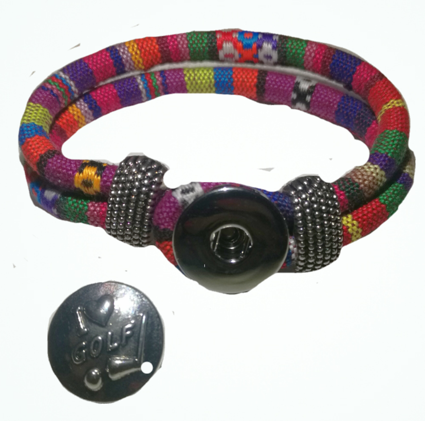 Pulsera de golf con marcador de bola plateado, cordón de algodón tonalidad en rosa.